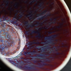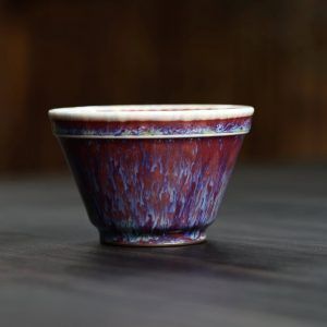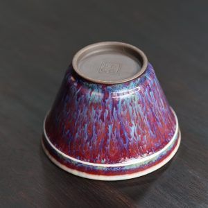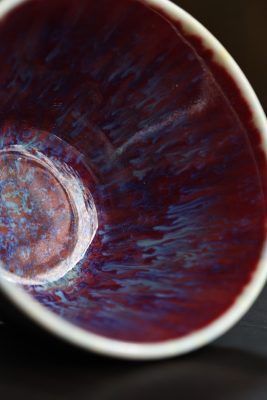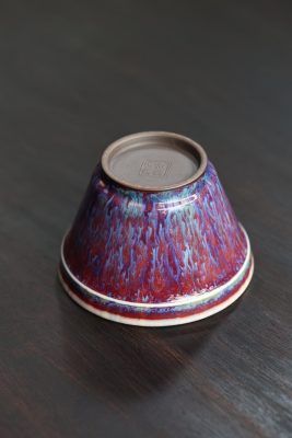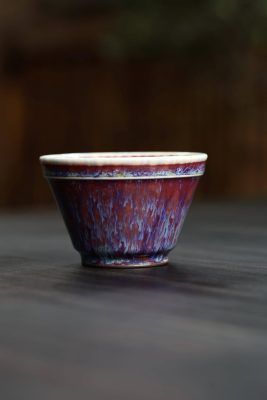 Chén nón sứ Quân diêu của Si Đông Các dung tích 90ml với nước men có chiều sâu nhiều lớp, là hàng độc bản, hiếm có. Nhà Si có truyền thống ba đời phát triển sứ Quân, khôi phục sứ Quân cổ. Nghệ nhân cần phải kiểm soát chặt chẽ nhiệt độ và môi trường trong lò nung. Sự biến đổi màu sắc của men xảy ra trong quá trình nung, khi các khoáng chất phản ứng với nhau tạo ra màu sắc độc đáo và độc bản.